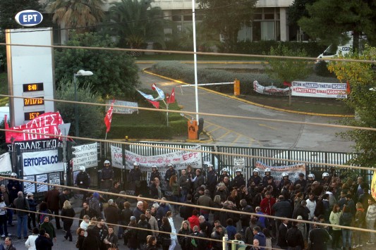 Τέσσερις όμως αρνήθηκαν, ανάμεσά τους ο εκπρόσωπος των εργαζομένων στην ΕΡΤ, Νίκος Τσιμπίδας και ο πρόεδρος της ΠΟΣΠΕΡΤ, Παναγιώτης Καλφαγιάννης, αρνήθηκαν να αποχωρήσουν και προσήχθησαν στη ΓΑΔΑ.