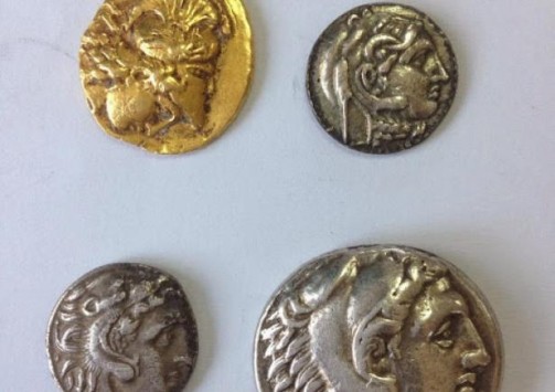 • Τέσσερα αρχαία νομίσματα, εκ των οποίων ένα χρυσό και τρία ασημένια,