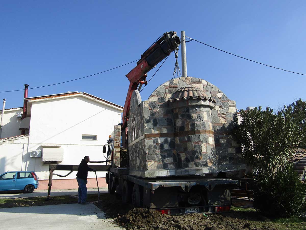 Ο ναίσκος έφτασε σήμερα το πρωί στην Κομοτηνή από τη Θεσσαλονίκη και με την χρήση γερανού θα τοποθετηθεί στο σημείο.